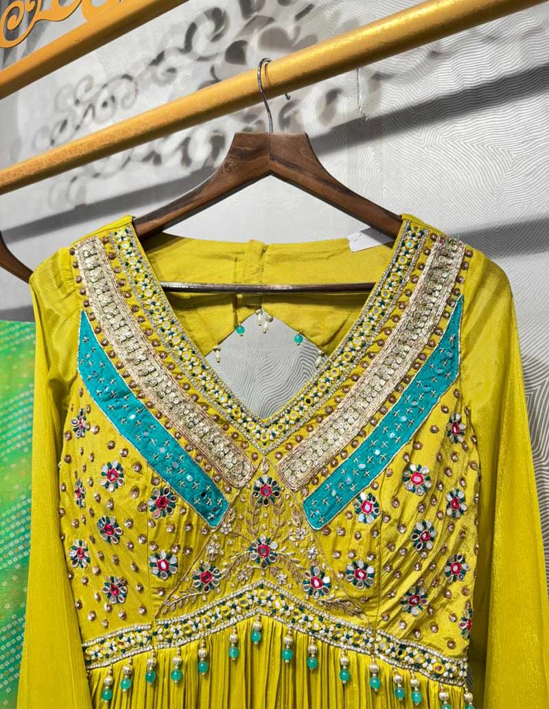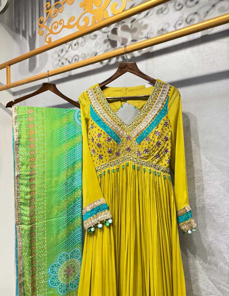 You just have to mention your sizes according to the size guide given below every product and adjustments/fit will be made accordingly as our outfits are completely Readymade Based