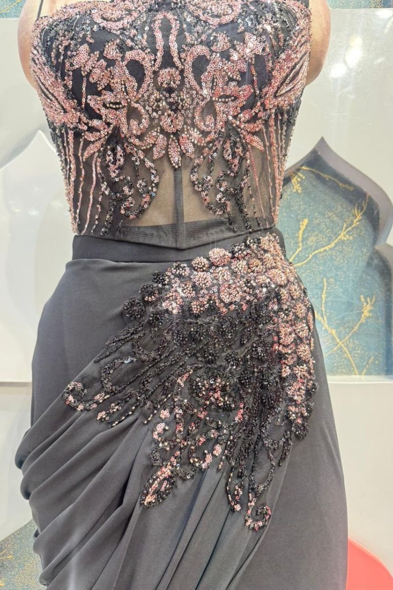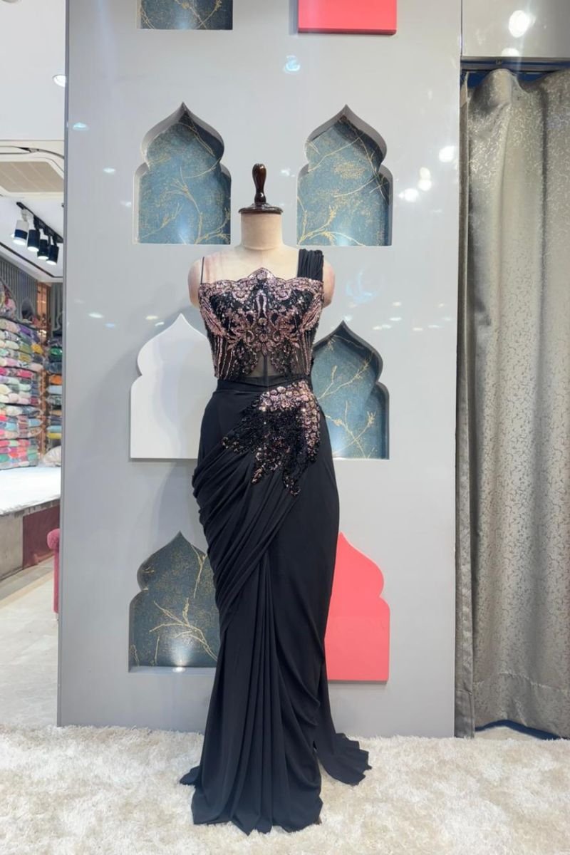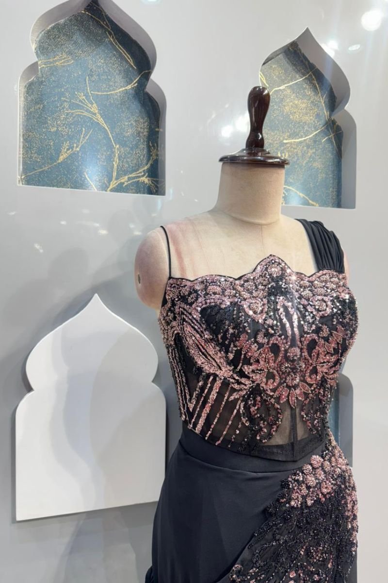“BLACK ROSE SEQUIN DRAPE SAREE”