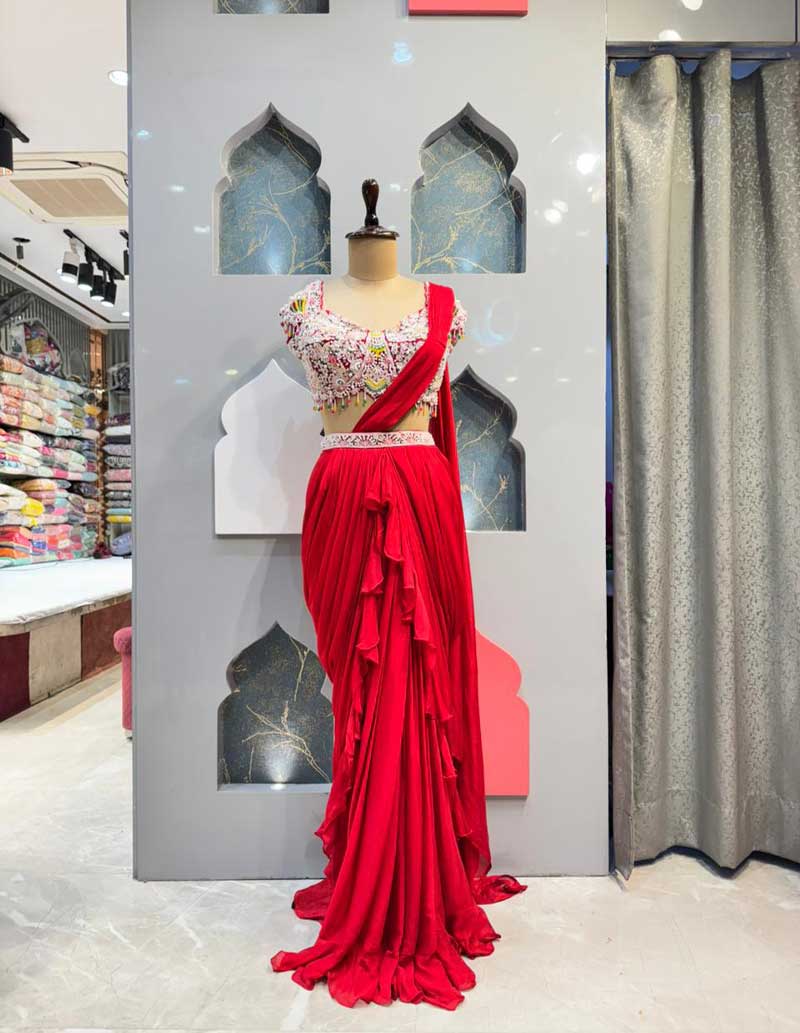 You just have to mention your sizes according to the size guide given below every product and adjustments/fit will be made accordingly as our outfits are completely Readymade Based