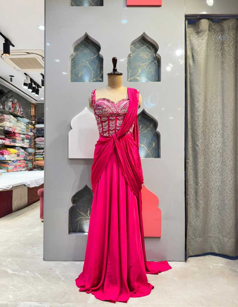 You just have to mention your sizes according to the size guide given below every product and adjustments/fit will be made accordingly as our outfits are completely Readymade Based