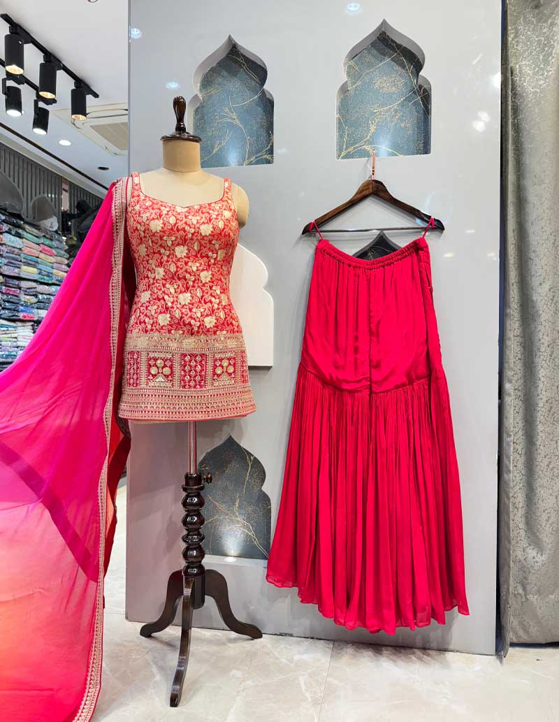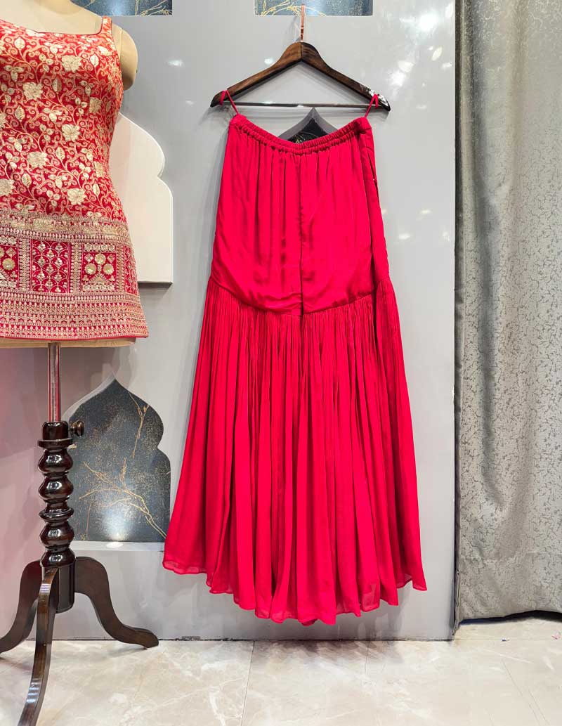 You just have to mention your sizes according to the size guide given below every product and adjustments/fit will be made accordingly as our outfits are completely Readymade Based
