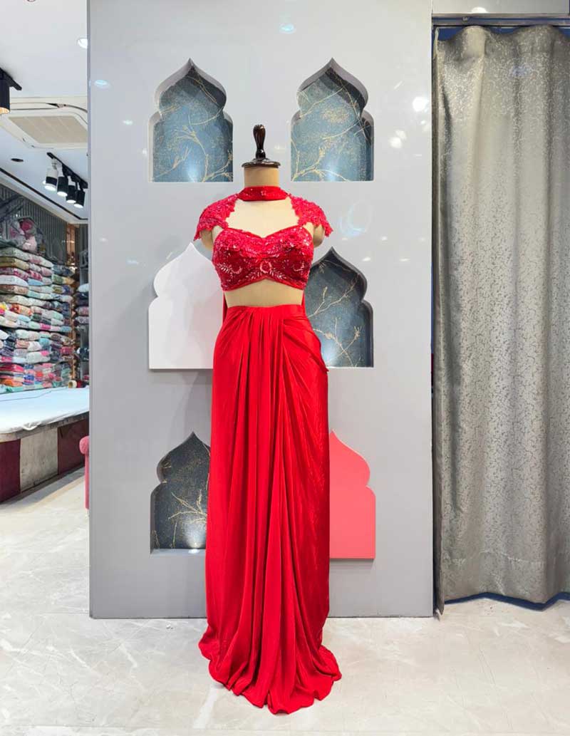 You just have to mention your sizes according to the size guide given below every product and adjustments/fit will be made accordingly as our outfits are completely Readymade Based
