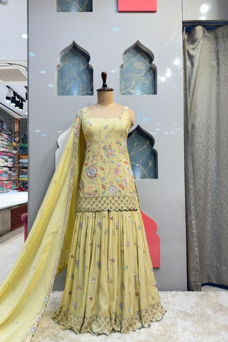 You just have to mention your sizes according to the size guide given below every product and adjustments/fit will be made accordingly as our outfits are completely Readymade Based
