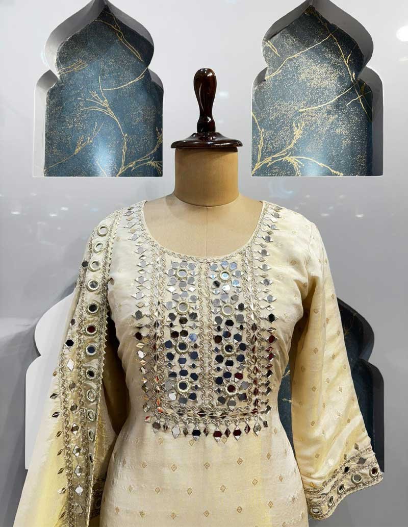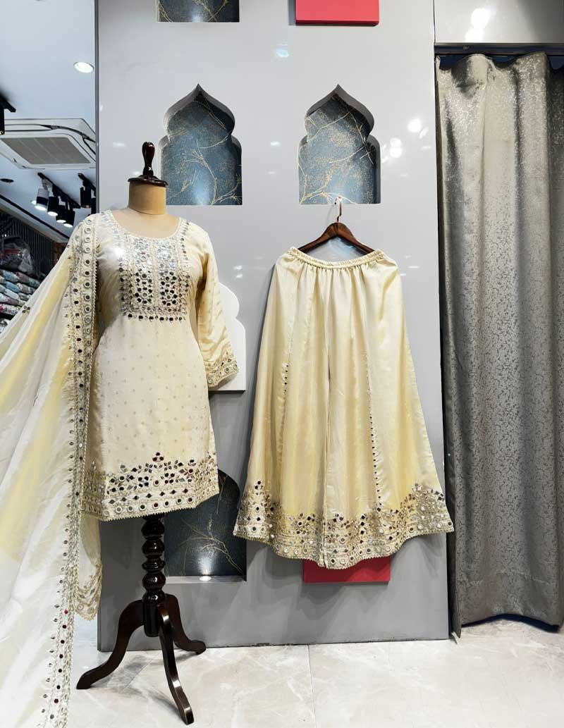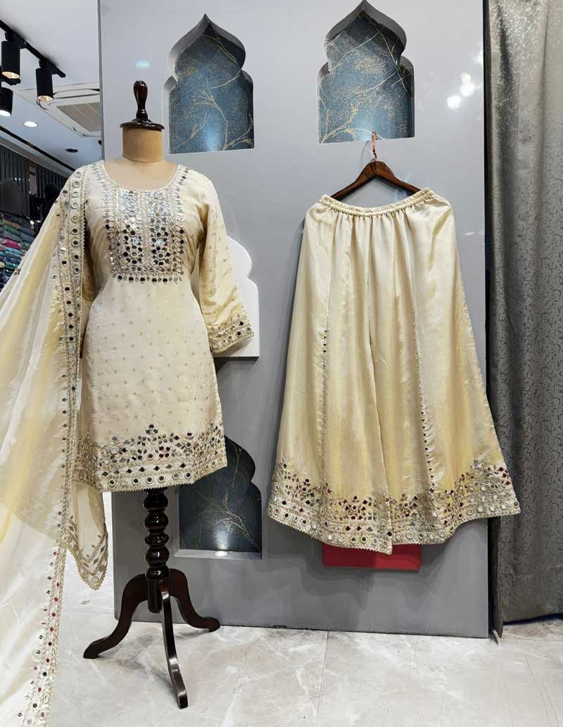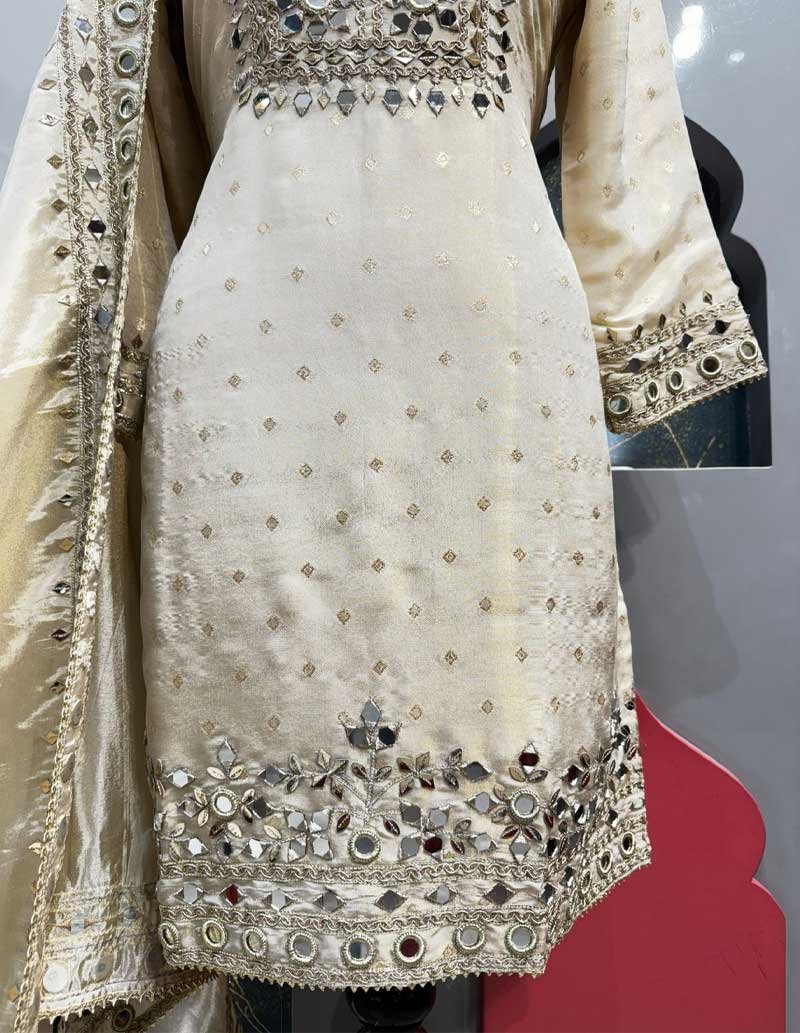 IVORY MIRRORWORK SHARARA SET