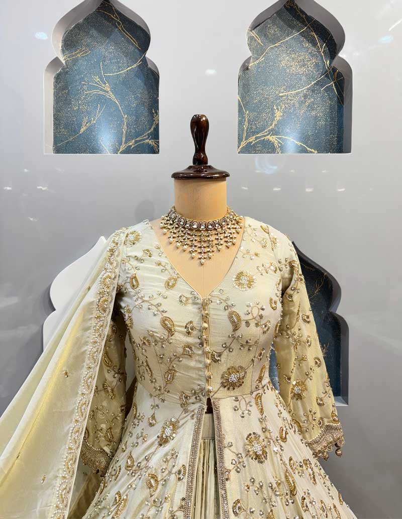 You just have to mention your sizes according to the size guide given below every product and adjustments/fit will be made accordingly as our outfits are completely Readymade Based