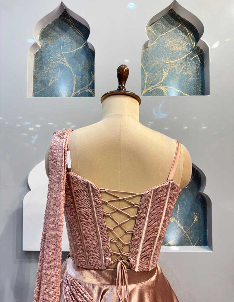 You just have to mention your sizes according to the size guide given below every product and adjustments/fit will be made accordingly as our outfits are completely Readymade Based