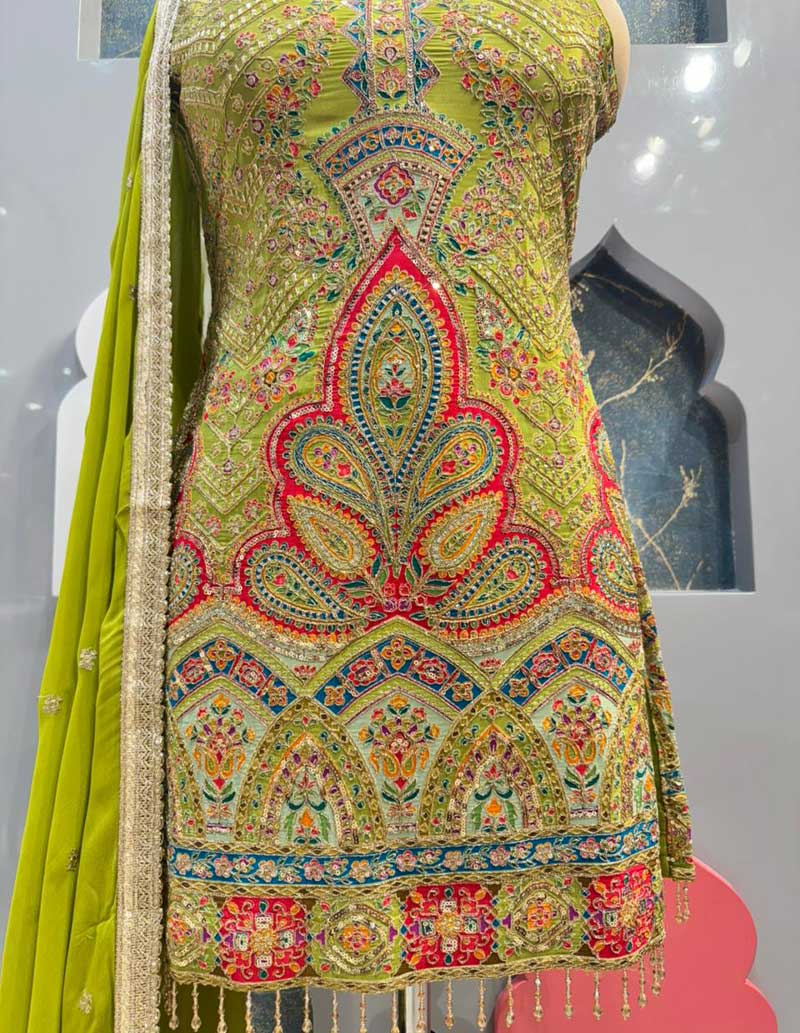 You just have to mention your sizes according to the size guide given below every product and adjustments/fit will be made accordingly as our outfits are completely Readymade Based
