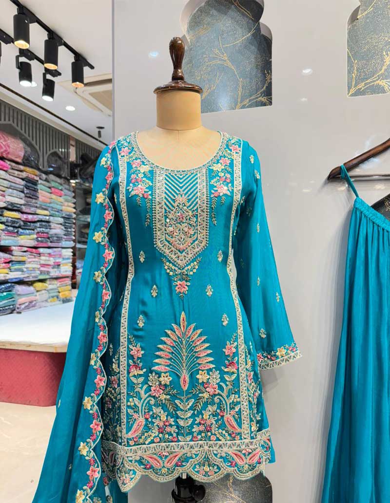 You just have to mention your sizes according to the size guide given below every product and adjustments/fit will be made accordingly as our outfits are completely Readymade Based