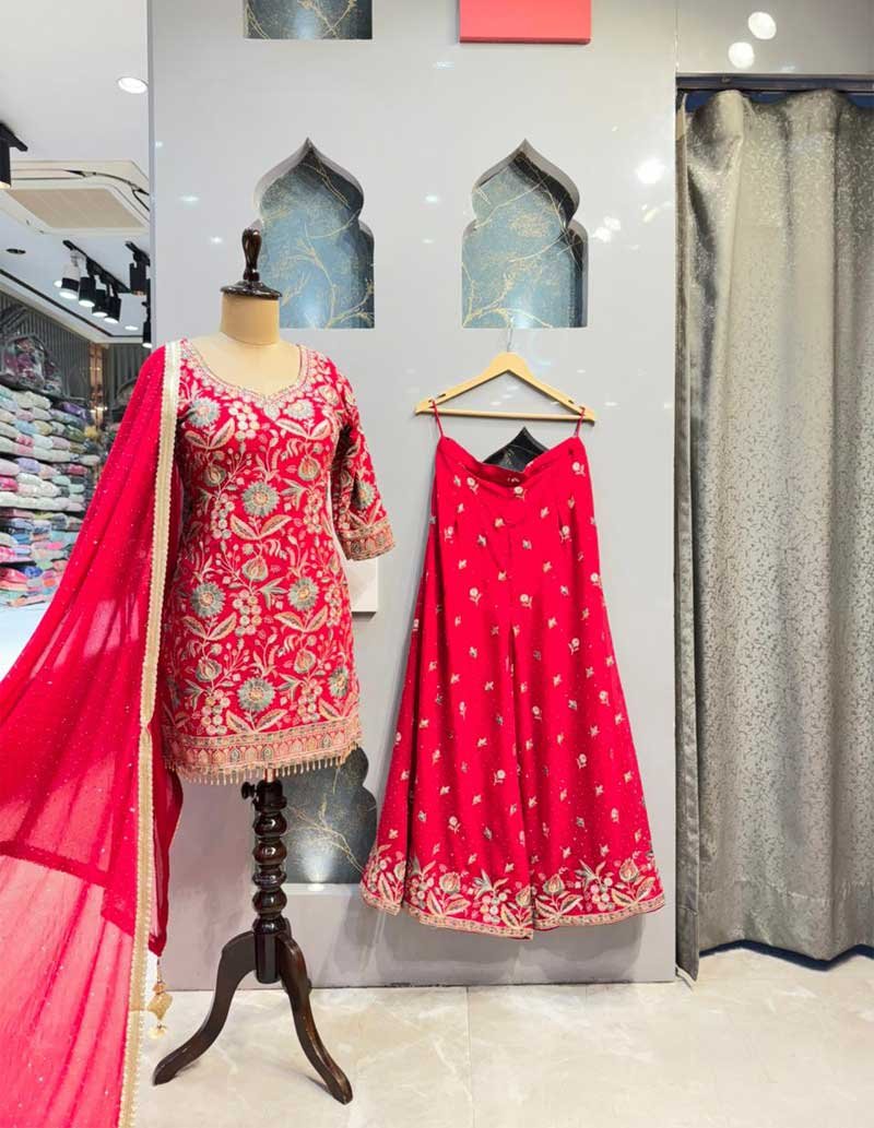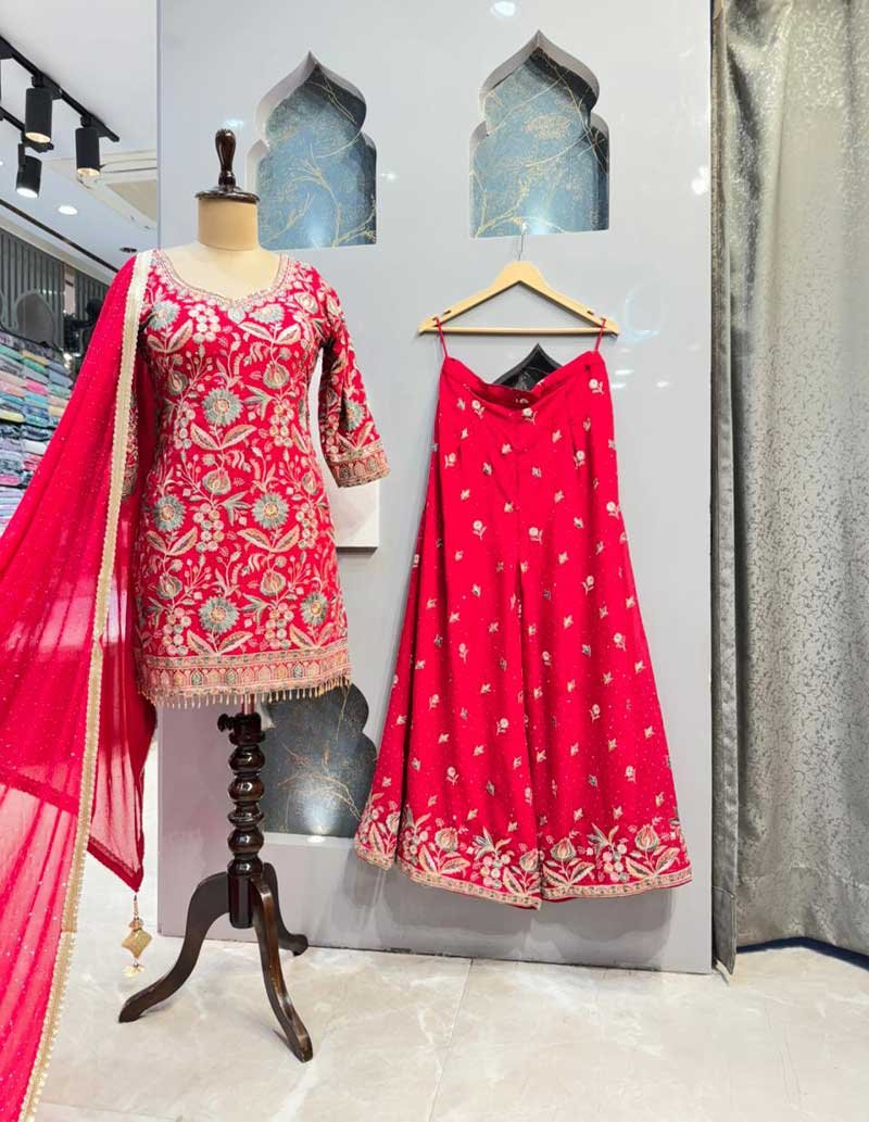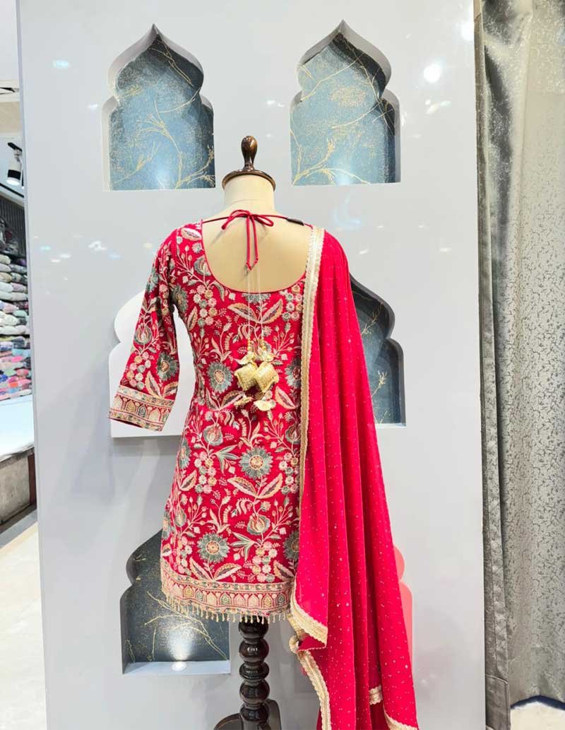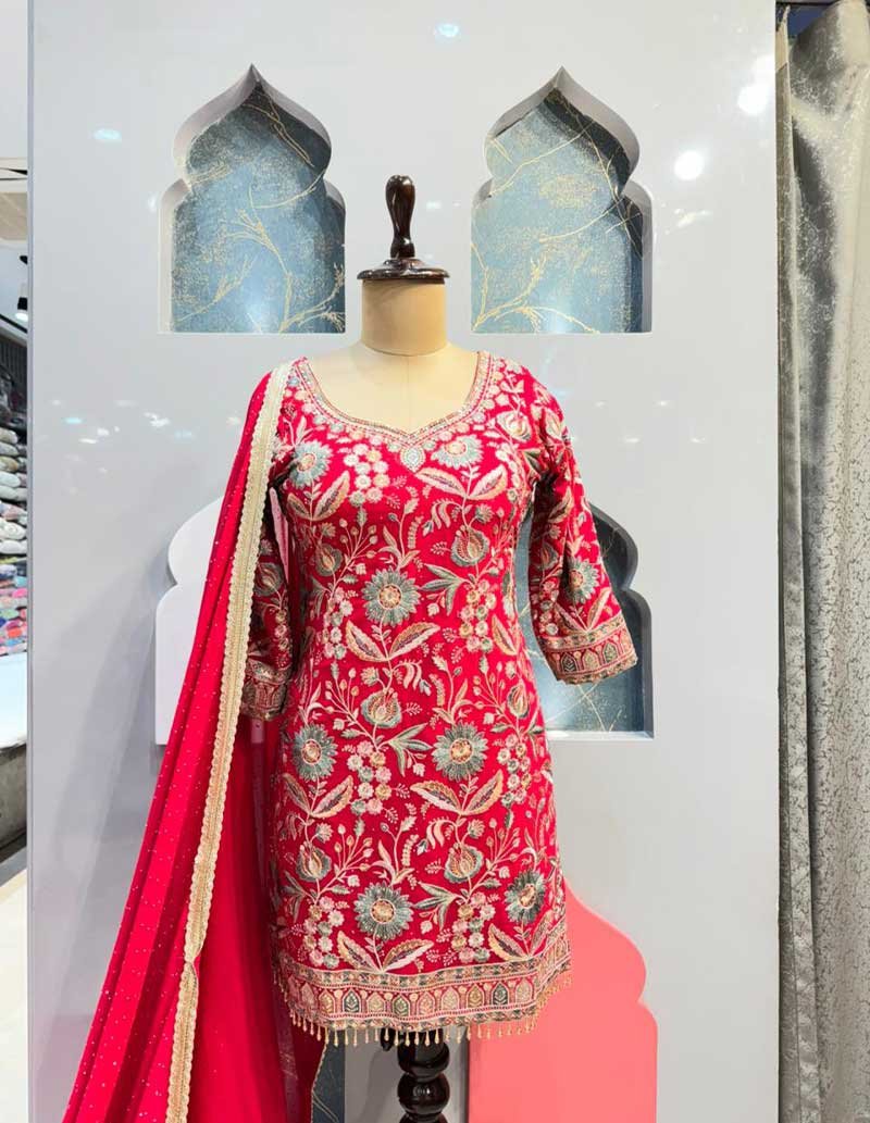You just have to mention your sizes according to the size guide given below every product and adjustments/fit will be made accordingly as our outfits are completely Readymade Based