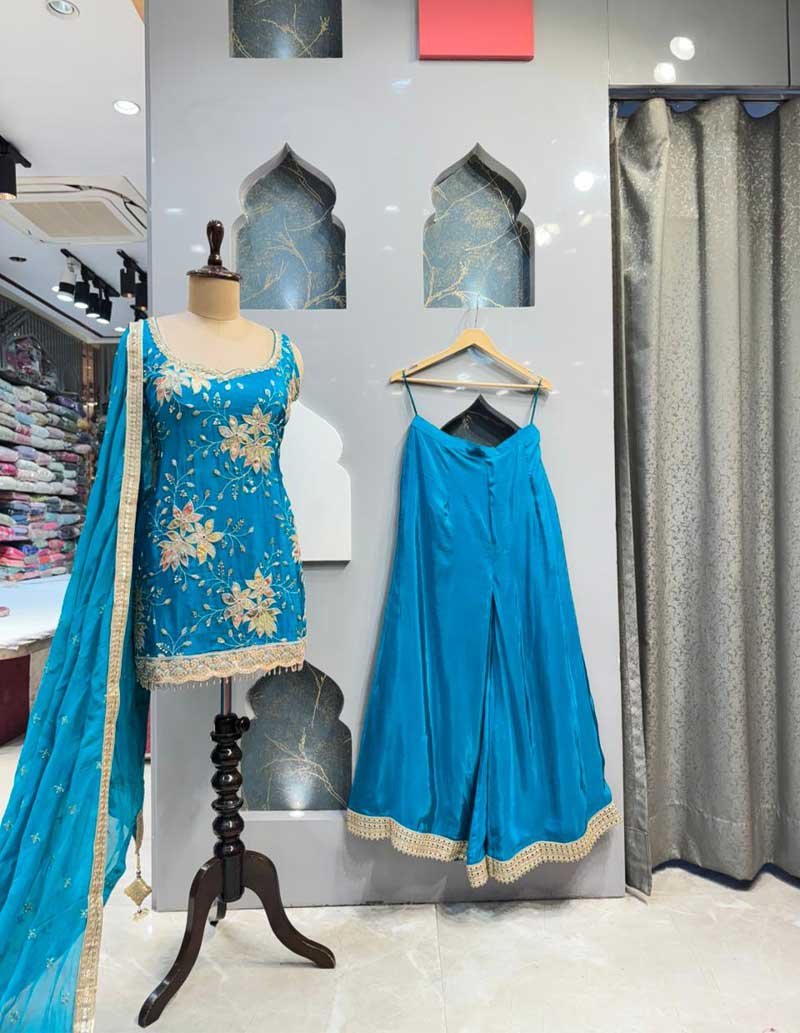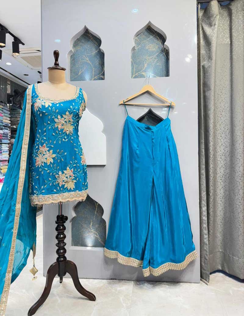 You just have to mention your sizes according to the size guide given below every product and adjustments/fit will be made accordingly as our outfits are completely Readymade Based