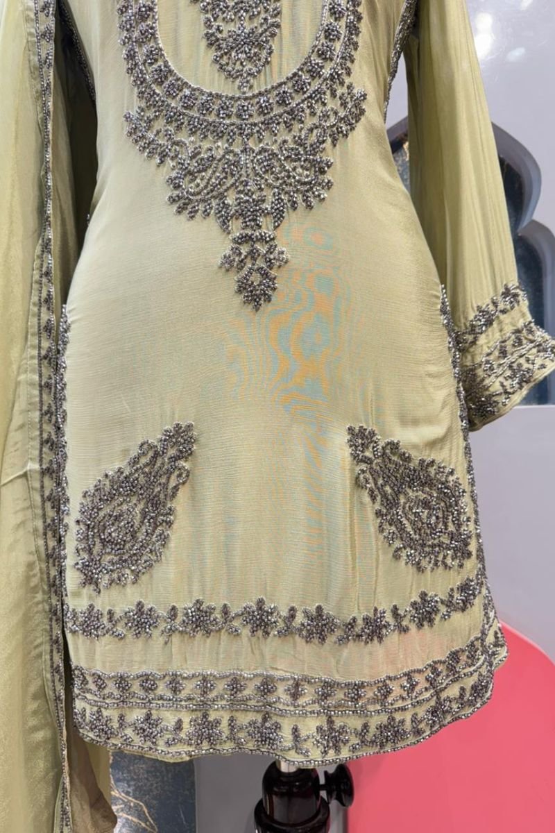 You just have to mention your sizes according to the size guide given below every product and adjustments/fit will be made accordingly as our outfits are completely Readymade Based