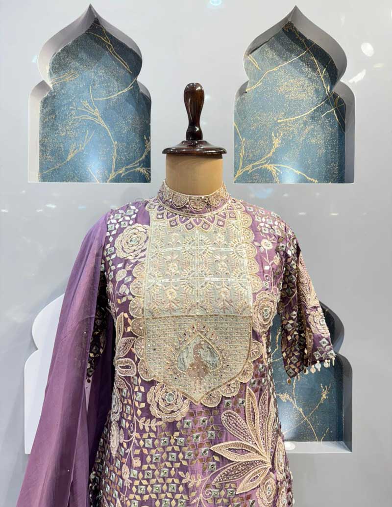 You just have to mention your sizes according to the size guide given below every product and adjustments/fit will be made accordingly as our outfits are completely Readymade Based